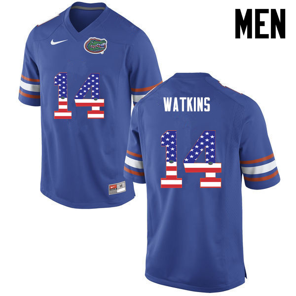 Men Florida Gators #14 Jaylen Watkins College Football USA Flag Fashion Jerseys-Blue